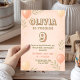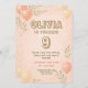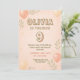 Entra numa terra maravilhosa, com este design de aniversário de balão mágico, com balões cor-de-rosa macio e amarelos adornados com delicadas flores de pêssego numa canvas pastel quente. Perfeito para a celebração especial de uma criança, esta obra personalizável tece uma vibração festiva e encantadora no partido. Com o seu encanto floral lúdico, está destinado a criar um carnaval de memórias alegres. Inclui espaço para os detalhes do evento e informações de RSVP. Personalize-o para artesanato um tesouro para seu pequeno e seus convidados!