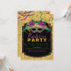 Convites do carnaval. Criado com um divertimento e uma multi máscara colorida festiva em um fundo glittery com as flâmulas e a miçanga tradicionais do carnaval.