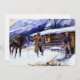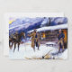 Charles (CM) Russell, o “artista cowboy”, criou mais de 2.000 pinturas de cowboys, índios e paisagens ambientadas no oeste dos Estados Unidos. Ele viveu e trabalhou entre os cowboys e a tribo indígena Blood em seus anos mais jovens. Esta pintura é chamada de “Carne de Natal” e retrata um cowboy oferecendo um presente de carne de veado recém-caçada a um velho em uma cabana.