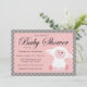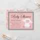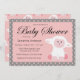 Um design de convite de chá de fraldas doce com borregos e bolinhas cor-de-rosa bonitos sobre um fundo de cinza. Personalize com seus detalhes de evento editando as informações de exemplo no modelo de design. Você pode alterar fontes e tamanhos de fonte e mover o texto e os gráficos no convite para atender às suas necessidades.