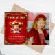 O carrossel utilizado no convite é criado manualmente digitalmente, com elegante textura vermelha para combinar com o carrossel. Douradas Fronteiras são usadas para dar ao convite uma taxa clássica