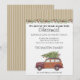 Compartilhe seu novo endereço de forma festiva com nosso anúncio de Natal “Nós nos mudamos”! Este cartão de Natal encantador apresenta uma perua inspirada no vintage carregando uma árvore de Natal clássica no teto, perfeito para espalhar alegria e suas novas informações de contato para amigos e familiares. O design retrô é ideal para quem ama o clima natalino nostálgico e quer tornar sua mudança memorável.