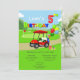 Celebrar o quinto aniversário de um menino especial com este encantador convite temático de golfe! Apresentando um carrinho de golfe vermelho estacionado ao lado de um bote verde este doce design é carregado com detalhes divertidos de um bolo festivo de aniversário, presentes e um monte de balões de hélio brilhante, incluindo um grande balão número 1. Perfeito para uma família que ama o golfe ou um tema único de quinto aniversário, este convite dá o tom para um dia cheio de diversão no verde.