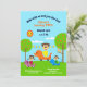 Celebre o segundo aniversário do seu filho com este convite geométrico e moderno, que inclui o aniversariante e os seus amigos a montar carros elétricos no parque ou no jardim público: um gato, um elefante e um pato! O fundo deste convite de festas colorido apresenta pontos coloridos que se parecem com confete festivo e sol brilhante sorridente. É fácil personalizar este simples e fofo convite de festas com seus próprios detalhes.