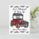 Adicione a foto do casal de aniversariantes a este convite de carro antigo vermelho para um divertido aniversário de 50, 25 ou qualquer ano. Altere o texto para qualquer ocasião.