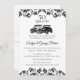 Convite de aniversário de casamento com carros antigos e damasco decorativo com emblema de nome decorativo no verso. Estilo clássico e formal de texto e minha própria arte desenhada à mão para um conjunto de convites de 50º aniversário único e lindo.