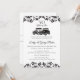 Convite de aniversário de casamento com carros antigos e damasco decorativo com emblema de nome decorativo no verso. Estilo clássico e formal de texto e minha própria arte desenhada à mão para um conjunto de convites de 50º aniversário único e lindo.