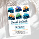 Este design apresenta um tema de aniversário de corrida de carros Monster Truck com o título "Smash and Crash It's a Monster Truck Bash" com carrinhos de monstros bonitos e coloridos, de cor azul, verde-alaranjado e roxo. Este cartão de convite pode ser facilmente personalizado com os detalhes do seu evento. Para que mais produtos correspondentes se sintam livres para me enviar mensagens no Zazzle.