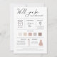Este cartão de informação é perfeito como uma proposta e um cartão de informação para a dama de honra! Com um estilo moderno, as cores são todas editáveis para editá-las, clique em "Personalizar" e clique em "Editar usando a ferramenta Design" Para quaisquer perguntas, envie-me aqui no Zazzle, (Observe que os designers não têm acesso ao seu produto e não podem editá-lo para você) A placa pode ser baixada, (Certifique-se de que seu endereço de email está correto antes de fazer uma encomenda digital (não posso corrigi-lo).