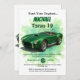 Comemore a virar dois dígitos em estilo com este convite de aniversário de carros de corrida verde, ousado e divertido! Apresentando um carro esportivo clássico em um fundo de abertura de água, este design é perfeito para crianças que amam carros, velocidade e aventura. Uma maneira divertida e moderna de convidar amigos para uma festa de alta energia cheia de risos, alegria e memórias inesquecíveis. Ideal para uma comemoração de 10 anos com um tema de corrida.