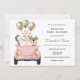 Convide os entes queridos para comemorar os pais a serem! Apresentando carro vintage cor-de-rosa com animais de distanciamento social vestindo máscaras e balões de ouro. Excelente de um chá neutro em termos de gênero. Personalize com seu texto. Clique em "Personalizar mais" para editar o estilo, o tamanho e a cor da fonte, se desejar.