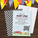 Este convite para o aniversário do carro de corrida divertida apresenta o primeiro convite para o aniversário do rapaz moderno, com uma divertida pista de corrida colorida, rápido primeiro aniversário de um aniversário. vá fazer um desenho animado simples, simples e moderno garoto minimalista, correndo em derby amarelo vermelho, corrida sobre carros, garotos corrida de carros de corrida crianças crianças, com faixa de controle de velocidade mínima, modelo de desenho animado para crianças de na moda moderna.
