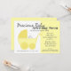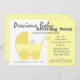 Carruagem amarela do bebê, "bebê precioso chegando em breve", convite para o Chá de fraldas. Altere o texto conforme necessário.