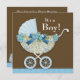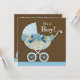 Adorável convite para chá de bebê carruagem e castanho-bege azul. Este chá de fraldas marrom e azul bonito apresenta um fundo marrom elegante com bege elegante e carruagem azul para bebês na frente e calçados doces para bebês nas costas. Este convite para chás de fraldas marrom e azul é facilmente personalizado para o seu evento, simplesmente escolhendo o botão laranja "Personalizar!" para começar a adicionar detalhes do evento, estilo de fonte, tamanho de fonte e cor e texto. Observe que todos os designs de cartas e convites que você encontrará no Zazzle são gráficos impressos sem joias reais, arcos, levantados, gravados em relevo ou peças ou peças adicionadas.