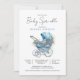 Convites Carruagem de bebê azul de aquarela É um guincho