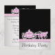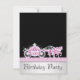 Convite de festa de aniversário da princesa com carruagem de cavalos branca. Este convite de festa de aniversário rosa e preto é adequado para um evento de princesa. Adicione detalhes do evento, tipo de letra, tamanho e cor da fonte e texto. Note que todos os convites no Zazzle são impressos sem elementos em relevo ou adicionais.