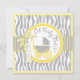 cinzas selvagens e doces e zebra branca são impressas com sotaques amarelos e carrinho de bebê bolinhas com arco 3D e fita para uma carta de convite para chás de fraldas neutra em termos de gênero.