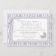 cinzas selvagens e doces e zebra branca com sotaques de lavanda e carrinho de bebê bolinhas com arco de aparência 3D e fita para uma carta de convite de chá de fraldas feminino.