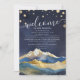 Modelo de Carta de Boas-vindas e Cartão de Convite Itinerário Moderno Vintage Elegante - Mola Azul Verde e Faux Ouro Montanhas Watercolor Paisagem Paisagem. Estas Designs Podem Ser Personalizadas Para A Sua Ocasião Especial E Seriam Perfeitas Para O Seu Casamento, Chá de panela, Festa de noivado, Festa de aniversário E Muitas Outras Ocasiões Especiais.
