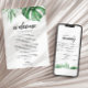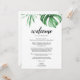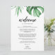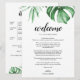Conjuntos de cartões de carta de boas-vindas e itinerário em aquarela com folhas de palmeira tropical criam o tom para o seu evento tropical. Coloque-os nas bolsas de boas-vindas do hotel para cumprimentar seus convidados e informá-los sobre o cronograma do seu grande fim de semana. São perfeitos para um casamento na praia ou em um destino, chá de bebê, festa na praia, festa de verão ou evento corporativo tiki. Compre toda a coleção na minha loja zazzle. Personalize ou edite ainda mais clicando no link "personalizar ainda mais" e use a ferramenta de design para modificar este modelo. Todo o estilo de texto, cores e tamanhos podem ser modificados para atender às suas necessidades. Precisa de ajuda para personalizar? Me envie uma mensagem!