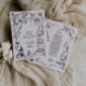Espessura de 18 pt / Gramatura de 120 lb. Branco suave, textura delicada.