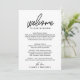 Essas cartas e cartões de mapa de boas-vindas com caligrafia caprichosa são perfeitos para uma bolsa de boas-vindas de casamento em um destino. O design apresenta uma tipografia elegante, mas rústica, para um visual minimalista simples. A frente do cartão apresenta uma carta de boas-vindas e itinerário. Inclua um mapa do seu resort com locais importantes anotados no verso do cartão.