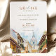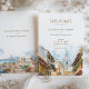Defina o tom para o casamento de destino de Cartagena com este incrível convite para salvar a data. A carta apresenta uma bela pintura aquosa do horizonte icônico de Cartagena, com seus domos históricos e subidas modernas contra um pano de fundo do sereno mar Caribe. O convite é enfeitado com tons de azul oceânico, bege arenoso e os amarelos quentes da costa colombiana. Este convite é uma promessa de uma celebração vibrante e colorida para vir.