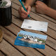 Este postal apresenta um retrato em aquarela da Ópera de Sidney, em Sidney, Austrália.