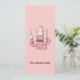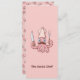Cartoon de chef rosa com bigode segurando faca e garfo de cozinhar. Cor de fundo personalizada. Texto frontal personalizado. Padrão sem falhas e campos de texto personalizados no verso.