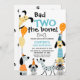 Cartoon Like Bad Two The Bone Dogs segundo aniversário Invitation Bonito Cartoon como o convite de segundo aniversário para cães com vários cães, balões, chapéus de festa e ilustrações ósseas.