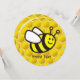 Cartoon voador de abelha sorridente sobre fundo de colmeia de abelha sem costura.
