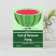 Um convite vertical para uma festa de fim de verão com um tema de ilustração de melancia sorridente.