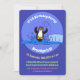 Um convite de aniversário de desenho animado de pinguim saltitante feliz e fofo!