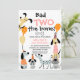 Cartoon Rosa Mau Dois O segundo aniversário dos Cães Ossos Convite Cartoon Bonito Como o convite para segundos aniversários temido pelo cão com vários cães, balões, chapéus de festa e ilustrações ósseas para uma menina.