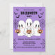 Foto Cute Kawaii de Spooky Fantasmas com morcegos e teias sobre fundo roxo leve no Convite do Festa de Halloween