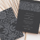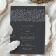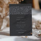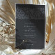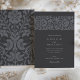 Este sofisticado convite para o casamento apresenta um fundo de carvão profundo adornado com intrincados padrões florais em tons suaves, criando um aspecto refinado e eterno. A frente do convite mostra um motif floral bem detalhado no topo, aliado a tipografia elegante que graciosamente apresenta os detalhes do casamento. As costas continuam o tema floral, fornecendo um design harmonioso e sem descontinuidades. Perfeito para casais que buscam uma estética moderna, mas clássica, a paleta escura e muda deste convite adiciona um toque de luxo subestimado, fazer ideal para a noite ou casamentos formais.