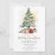 Esta árvore de natal, cor d'água, um convite à Casa Aberta de Natal com uma linda árvore de Natal decorada com bolas vermelhas e douradas e com uma espiral de presentes brilhantemente embrulhados abaixo seria perfeito para convidar colegas e clientes para uma casa aberta de férias. Os modelos são muito fáceis de usar e em segundos você pode ver seus convites fabulosos.