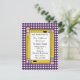 Um convite que caracteriza um fundo roxo do guingão na parte dianteira e na parte traseira. A parte dianteira caracteriza os lápis amarelos arranjados em uma forma do retângulo com centro branco. Personalize com detalhes de sua ocasião.