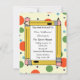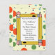 Um convite que caracteriza um verde, uma laranja, e um fundo azul das bolinhas na parte dianteira e na parte traseira. A parte dianteira caracteriza os lápis amarelos arranjados em uma forma do retângulo com centro branco. Personalize com detalhes de sua ocasião.