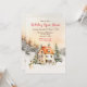 Este belo e festivo convite à casa aberta de férias com aquarelas apresenta uma cabana de inverno rústica cercada de neve e árvores. Há animais adoráveis, como um cão rouco e um coelho, e também um boneco de neve e folhagem. O texto combina o script manuscrito e as fontes sans serif para uma aparência na moda e moderna. Isto é perfeito para uma festa de inverno ou de Natal.