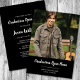 O fundo negro com a tipografia em apuros de marfim faz com que este convite à casa aberta de formatura seja uma escolha simplesmente na moda. Uma foto, nome e classe de (ano) na frente com detalhes da casa aberta da sala na parte de trás, bem como planos futuros do formando, se desejado. Veja a coordenação de itens no nosso compro, Encantado Finch.