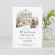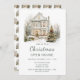 Convite de festas de Natal festivo com uma bela casa com árvores de Natal, neve, luzes de fadas e terras. Perfeito para um Partido Open House. As palavras podem ser alteradas para se adequarem aos seus próprios detalhes ou requisitos