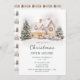 Convite de festas de Natal festivo com uma bela casa com árvores de Natal, neve, luzes de fadas e coroas. Perfeito para um Partido Open House. As palavras podem ser alteradas para se adequarem aos seus próprios detalhes ou requisitos