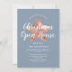 Convite à Casa Aberta de Natal com Rosa Azul com Estrelas, Personalizado, Dourado.