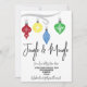 Vamos Jingle & Mingle em uma Casa Aberta de Férias! Este convite colorido é perfeito para dar o tom ao seu evento.