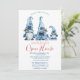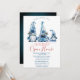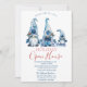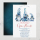 Gnomos azuis bonitos de aquarela em fundo branco. Estes belos convites de Natal são perfeitos para convites de festas de janto de Natal, convites para troca de presentes de Natal, angariadores de fundos de Natal, convites para bolas de férias e outros eventos realizados durante o mês de dezembro. Use apenas os campos modelo para adicionar suas próprias informações de evento.