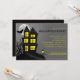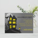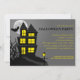 Características deste design uma grande, casa de três histórias com todas as luzes sobre. A lua no brilho brilhante no fundo com um bastão preto no primeiro plano. Há uma árvore desencapada e um cargo da lâmpada e a extremidade de um passeio longo que conduz à casa. Seus detalhes do partido são indicados no amarelo no lado de righthand. Ajuste em um fundo cinzento escuro. ©Cupcake Cutiees dos gráficos.