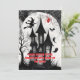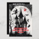 Defina o tom assustador para a sua festa de Halloween com este convite encantadoramente assustador! Com uma casa assombrada silhuetada contra uma lua cheia, uma bruxa voando, fantasmas brincalhões, morcegos e uma aranha vermelha brilhante pendurada em uma teia, este design ilustrado à mão captura a essência da magia de Halloween. Perfeito para festas à fantasia, reuniões para doces ou travessuras ou festas infantis de Halloween, este convite adiciona um toque de diversão e susto ao seu evento. Personalize o cartão com os detalhes da sua festa e prepare-se para uma noite diabolicamente divertida!