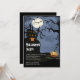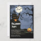 Comece sua festa de Halloween com nossa casa assustadora assombrada em uma festa de Halloween Convite apresentando uma casa assombrada assustadora sentada no topo de uma colina com um fundo azul. Visite nosso compro em www.celebrateitholidays.com para uma grande seleção de convites de festas de fantasia de halloween. Personalize com suas informações pessoais e você está pronto para ir.
