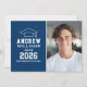 Anuncie sua celebração com este convite de casa de abertura de formatura em azul marinho moderno, apresentando um ícone de gorro clássico e tipografia ousada em estilo varsity. Adicione o nome do formando, escola e ano de conclusão na frente com uma foto favorita. O verso apresenta “Vamos Celebrar o Formando” com espaço para os detalhes da festa e RSVP. Limpo, atemporal e perfeito para uma casa de abertura de formatura de um veterano.
